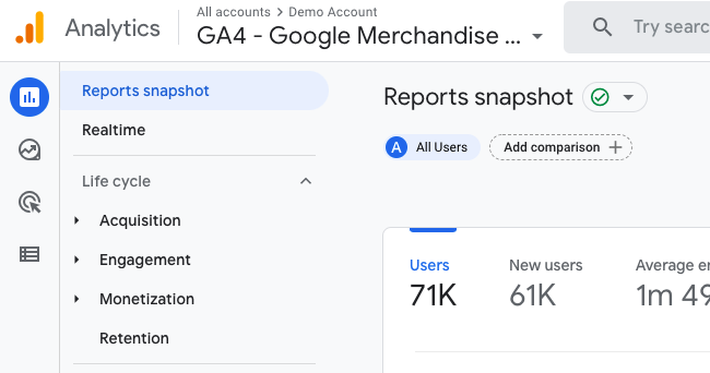 We’re using the demo account for this, but if you have GA4 setup on your site then you should be fine to get started using your own data.
